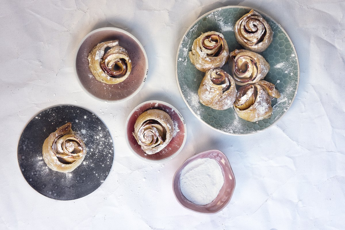 16. Bak de roosjes ongeveer 20-25 minuten in het midden van de oven tot het deeg gaar is op 200°C 16. Bestrooi de roosjes als ze afgekoeld zijn met poedersuiker.