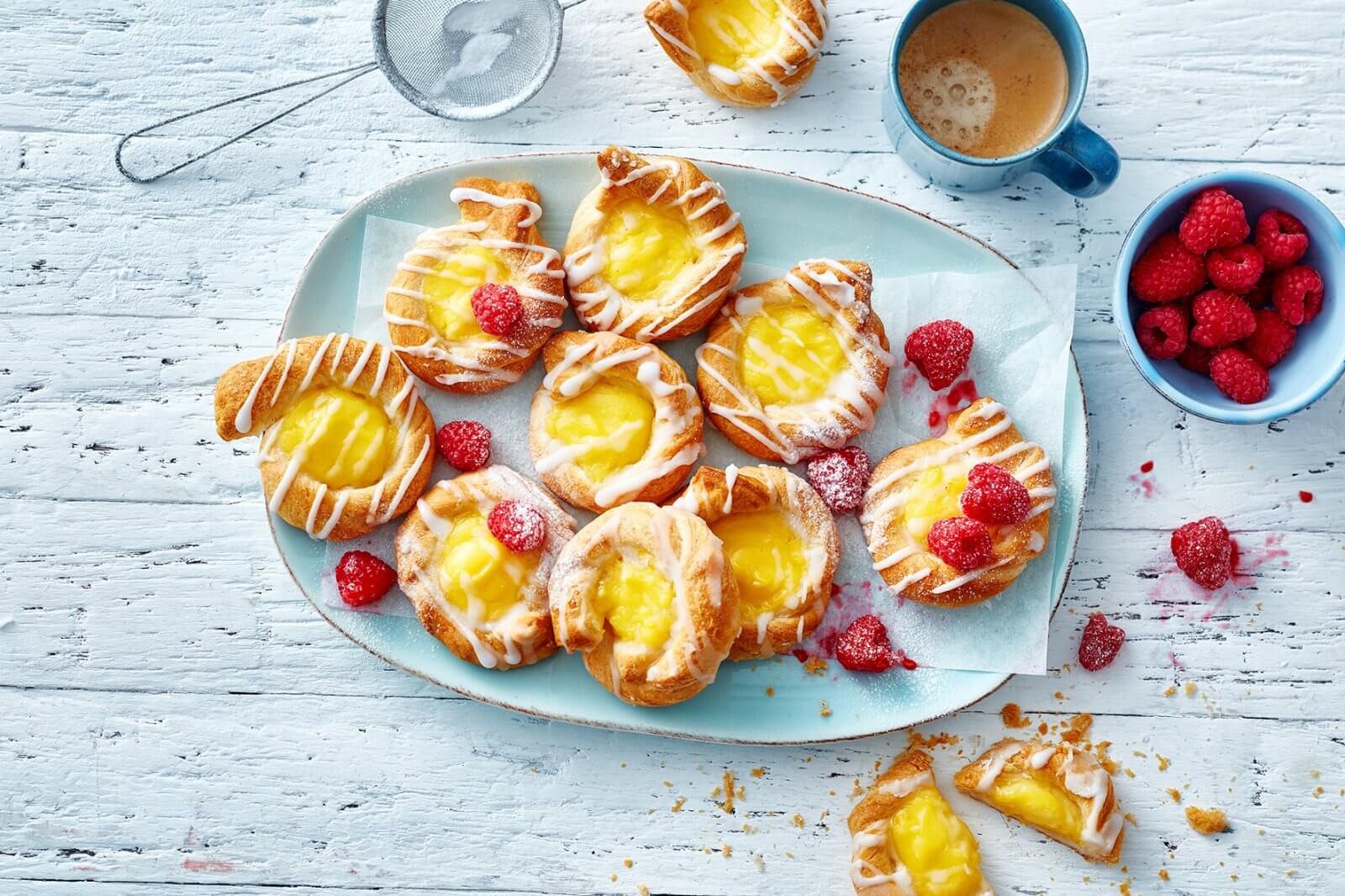 Een Deens koffiebroodje is eigenlijk gewoon croissantdeeg met banketbakkersroom (ook wel bekend als custard). Heerlijk wanneer belegd met vers rood fruit!