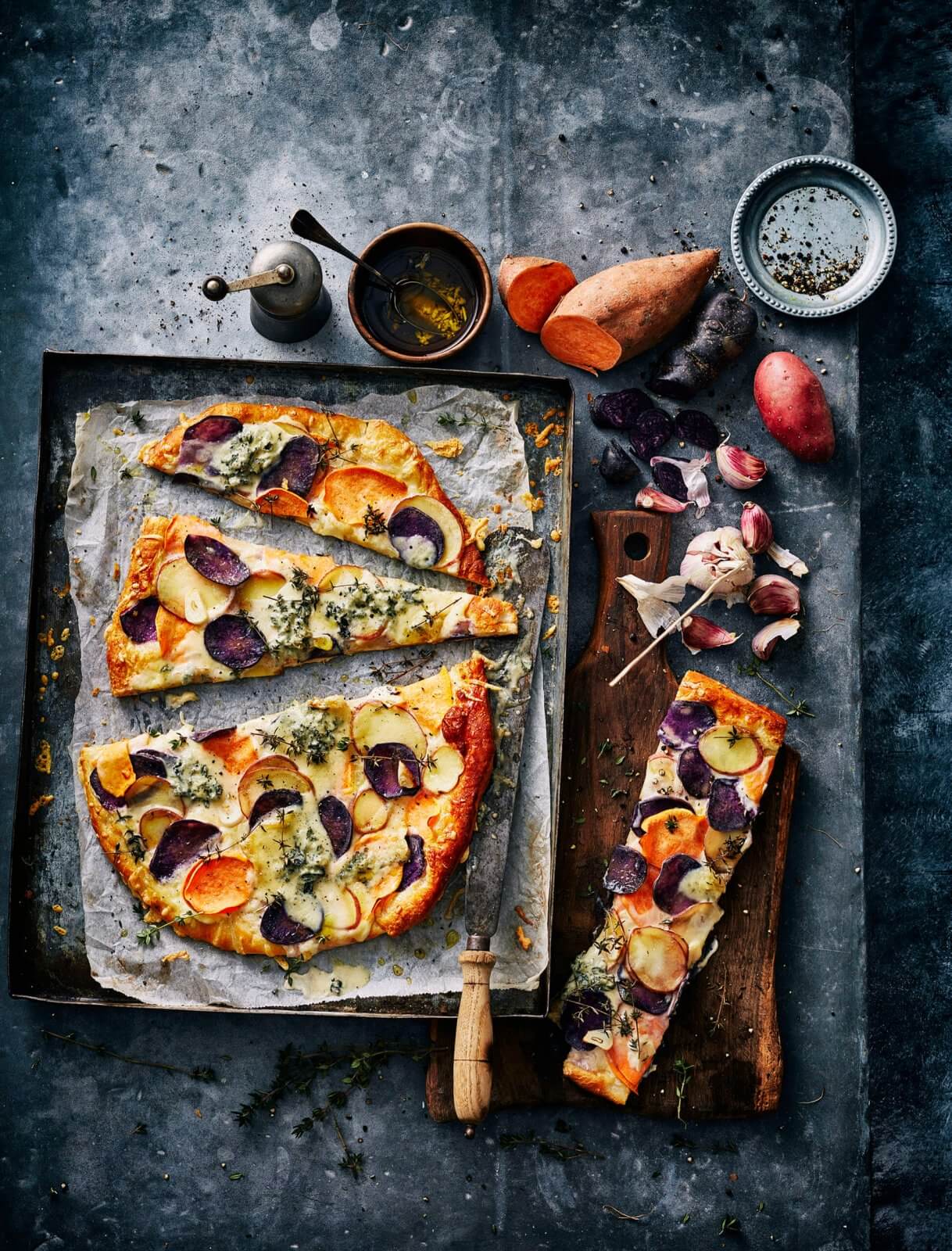 Flammkuchen -ook wel tarte flambée genoemd- kent vele varianten, maar altijd staat vast: deze all times favorite is een allemansvriend. Lichter en leuker dan een pizza. Aanwakkeren dat vuurtje en… uitdelen maar!