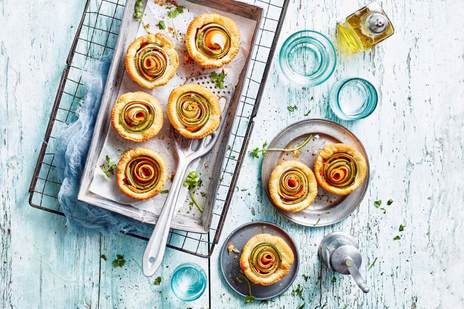 Hartige eenpersoonshapjes voor de deegnodige energie. Bijna zonde om op te eten zo’n groentequiche, zo mooi zijn ze. Tóch doen, want ze zijn zó lekker!