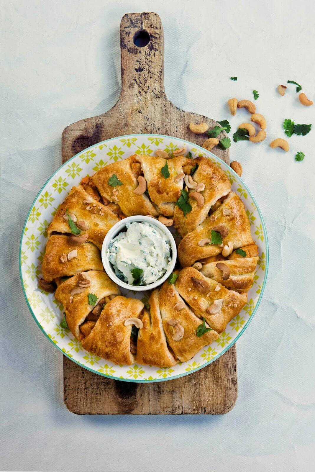 Kip tandoori? Kip Madras? Verras je tafelgenoten met deze heerlijke kipcurry croissantkrans! Maakt je maaltijd net even iets specialer.