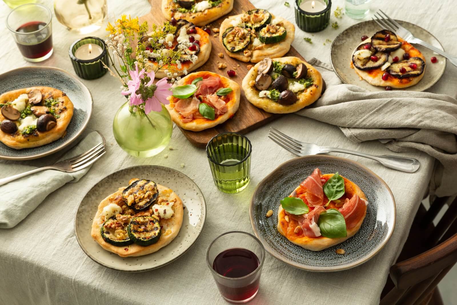 De kaarsen branden, de wijnglazen zijn gevuld en er staan zelfgemaakte mini pizza’s op tafel; de avond kan beginnen! Gewoon om het weekend te vieren of welk feestje dan ook 😉
