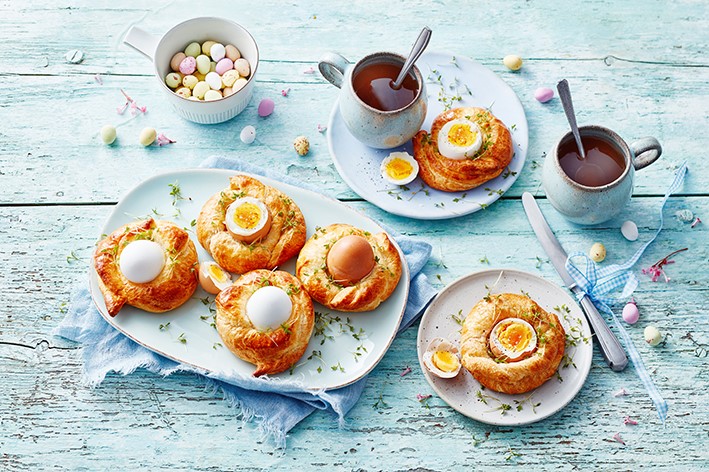 Ei ei ei en we zijn zo blij. Met onze Croissants Extra Large maak je een super leuk ei houdertje. Hop samen in de oven, en tast met de hele familie toe.
