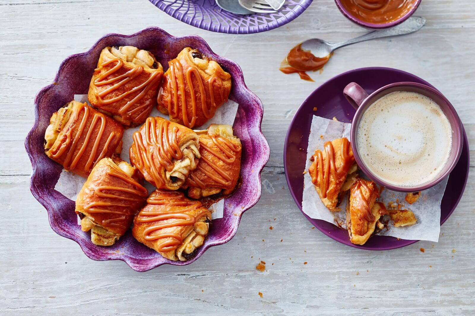- Druip wat karamelsaus over de Pains au Chocolat voor je echte Banoffee Karamel!